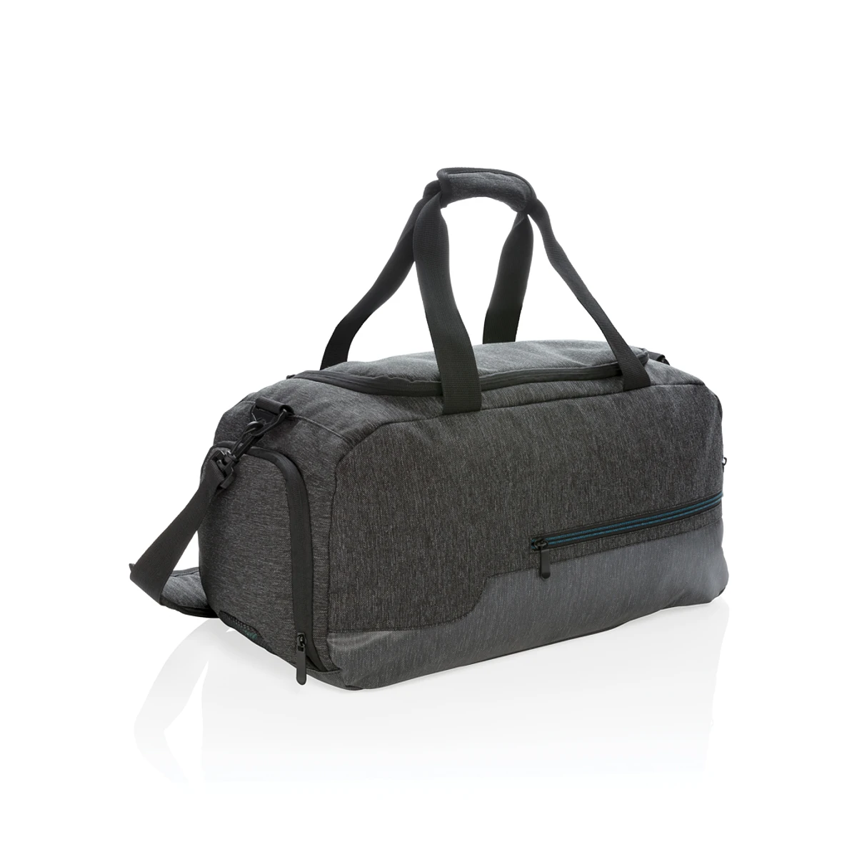 Esta bolsa 900D para deporte es perfecta para cualquier aventura o para ir al gimnasio. Está fabricada con poliéster duradero y su material es resistente a las salpicaduras para protegerla de superficies húmedas. Dispone de un compartimento principal con bolsillo interior para guardar objetos de valor, un bolsillo con ventilación para los zapatos, un bolsillo frontal con cremallera y asas acolchadas para un cómodo uso. sin PVC.