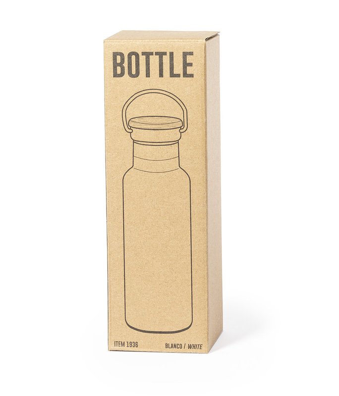 Bidón térmico de 500 ml de capacidad, fabricado en acero inox de doble pared. Incluye original tapón a rosca en acero inox, con detalle de bambú y asa integrada. Disponible en variada gama de colores y presentado en caja individual de diseño kraft.
