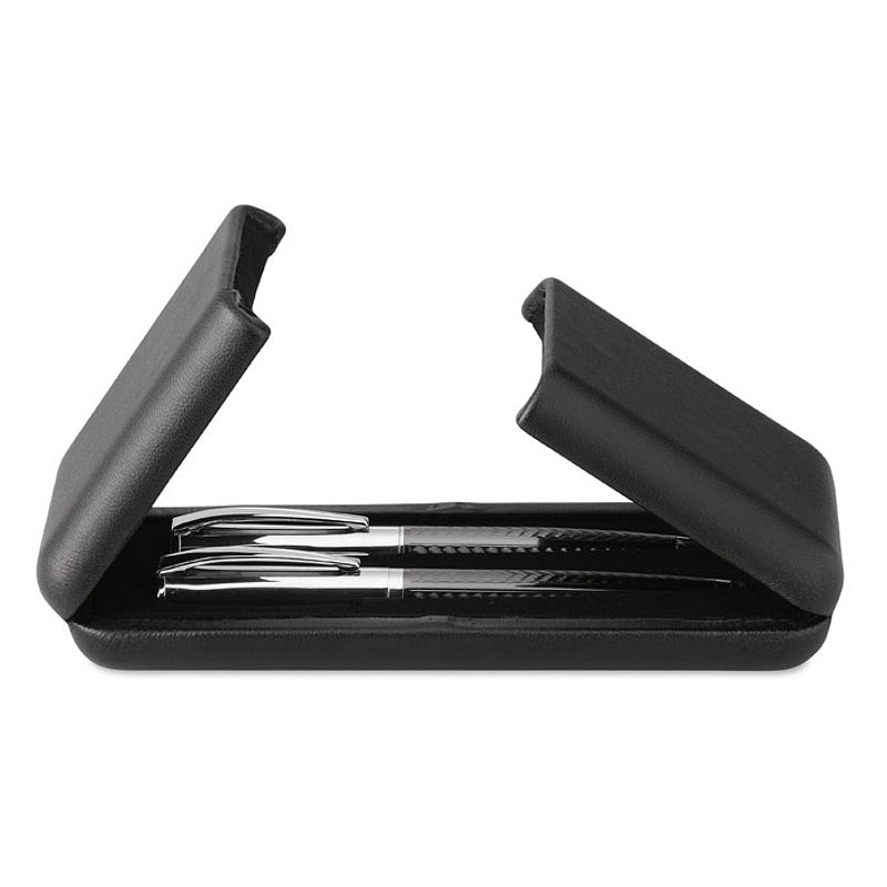 Set de bolígrafo giratorio y roller en caja de regalo. Tinta azul.