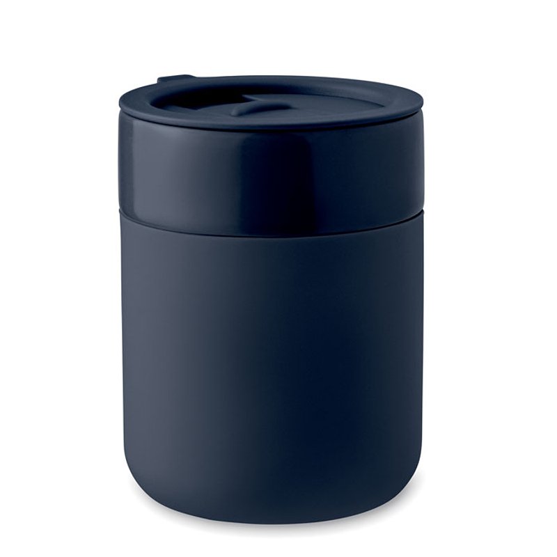 Vaso de cerámica con funda de silicona y tapa de PP. Capacidad: 330 ml.